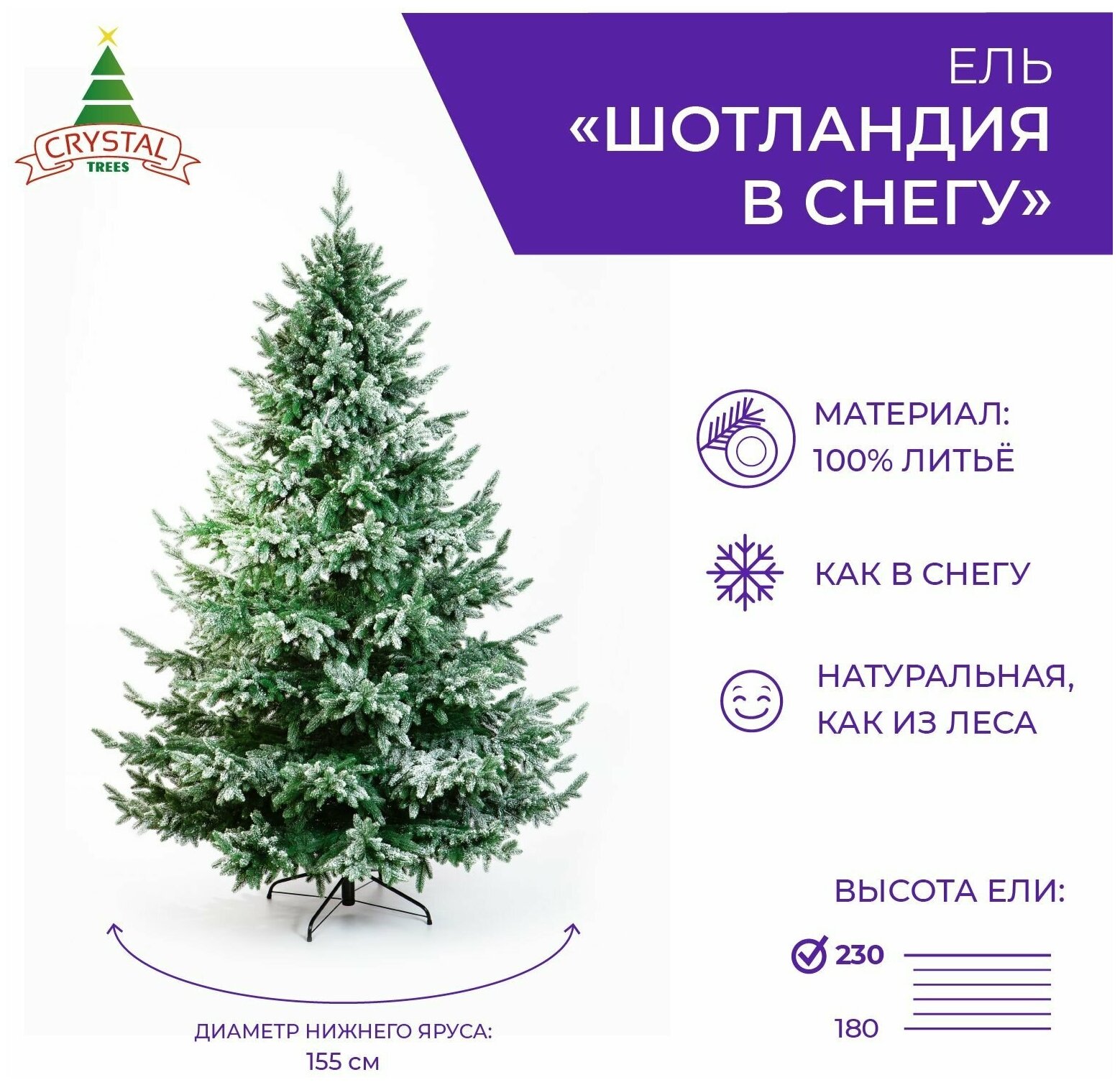 Искусственная елка Шотландия заснеженная 230 см, литая 100%, CRYSTAL TREES: сравнение цен, характеристики, фото, актуальное наличие и цены.