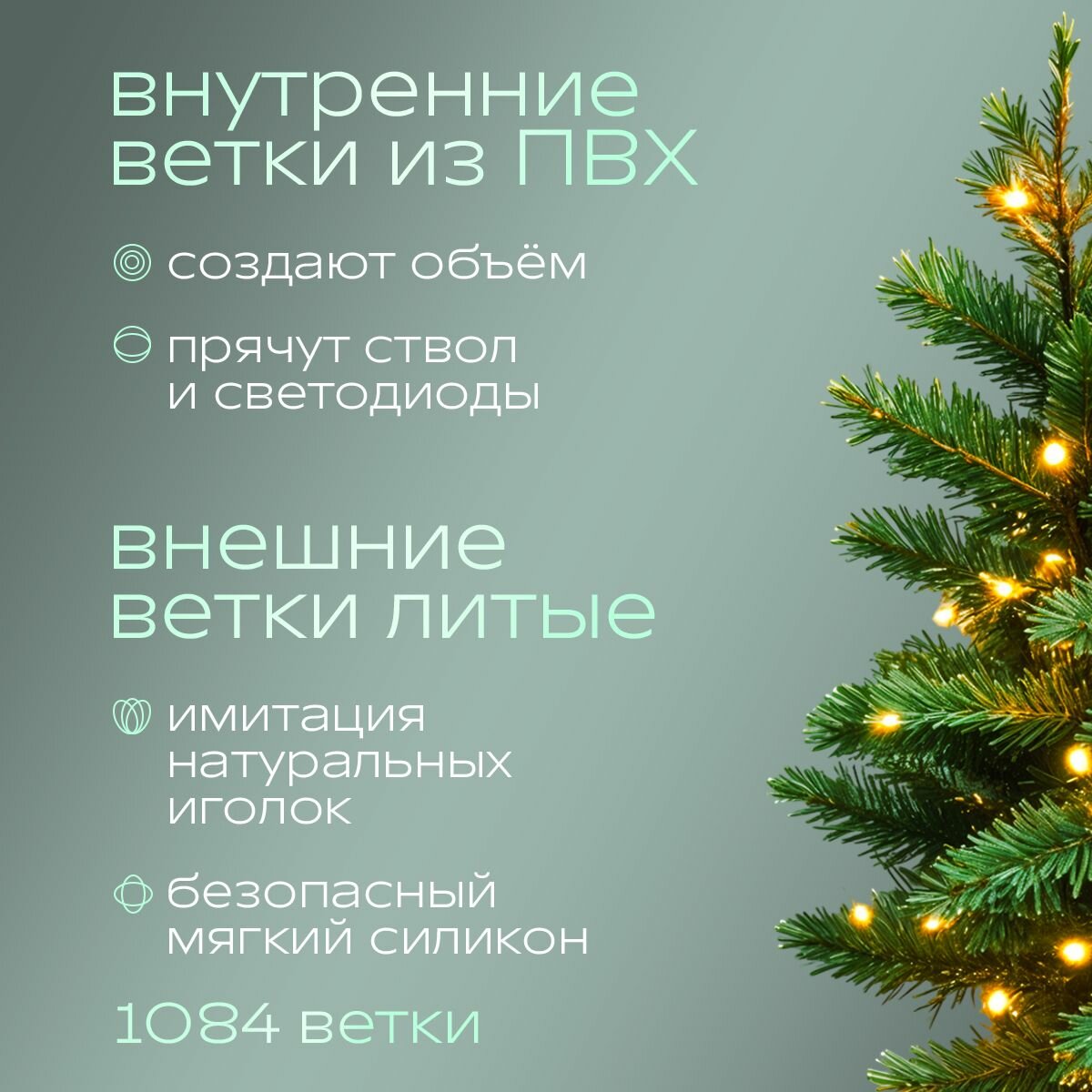 Приготовьтесь к волшебству новогодних праздников с нашей искусственной елкой высотой 150 см! Эта ель станет центром вашего дома в зимний период, создавая атмосферу уюта и праздника. Конструкция этой елки выполнена с максимальным вниманием к деталям, и ее насыщенный зеленый цвет привнесет в интерьер нотку живой природы. Изюминкой нашего продукта является встроенная гирлянда, которая мгновенно преобразит ваше пространство. С помощью меняющегося освещения вы сможете создать уникальную атмосферу для встречи нового года и Рождества. Гирлянда легка в использовании и позволяет вам без особых усилий организовать праздничное оформление. Эта новогодняя елка идеально подойдет для любого интерьера — будь то гостиная, кухня или офисное помещение. Благодаря своей компактной высоте она будет выглядеть стильно и не займет слишком много места, но при этом будет радовать вас своим великолепием. Искусственная конструкция отличается прочностью и долговечностью, поэтому вы сможете наслаждаться ею не один год. Елка не требует специального ухода, не осыпается, и что немаловажно, она не вызывает аллергии, что делает ее идеальным выбором для семей с детьми и питомцами. Можно смело украшать её шарами, гирляндами и другими новогодними атрибутами — ее ветви надежно крепятся и создают пространство для вашей фантазии. Идеально подходит для создания праздничного настроения как в домашних условиях, так и в коммерческих помещениях. Подарите себе и своим близким незабываемый новогодний опыт с этой искусственной елью, которая станет символом уюта и тепла в вашем доме. Приобретая нашу ель, вы инвестируете в качественный и стильный элемент декора, который будет радовать вас на протяжении многих лет.