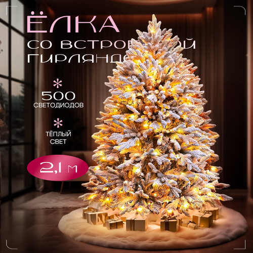 Превосходная искусственная елка высотой 2,1 м станет идеальным украшением для вашего дома в новогодние праздники. Она оформлена в заснеженном стиле, который создает атмосферу зимней сказки и придаёт уют вашему интерьеру. Эта елка не только выглядит реалистично, но и оборудована встроенной гирляндой, что позволяет сразу же насладиться её ярким и праздничным видом, не тратя время на дополнительное декорирование. Удобство использования искусственной елки заключается в её долговечности и простоте ухода. Вам больше не нужно беспокоиться о падении иголок или необходимости регулярного полива, как это бывает с живыми растениями. Каждую зиму вы можете наслаждаться свежим и стильным украшением, которое сохранит свой вид на протяжении многих лет. Эта новогодняя елка прекрасно подходит для создания праздничной атмосферы как в квартире, так и в загородном доме. Ее стильная заснеженная отделка идеально сочетается с различными видами праздничного декора, а разнообразие форм и размеров веток позволяет удобно разместить гирлянды, игрушки и другие элементы украшения. Выберите эту искусственную ель, если хотите внести в свой дом волшебство зимних праздников. Она станет не только центральным элементом вашей новогодней композиции, но и источником вдохновения для создания незабываемых моментов с семьей и друзьями.