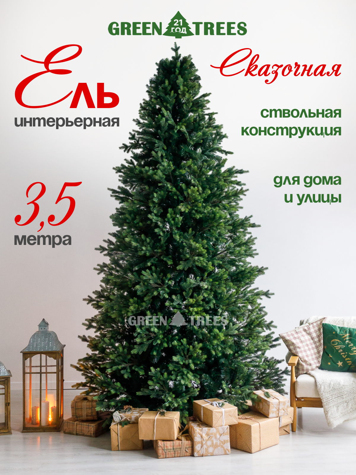 Искусственная интерьерная ствольная ель Green Trees Сказочная, высота 3,5 м: сравнение цен, характеристики, фото, актуальное наличие и цены.