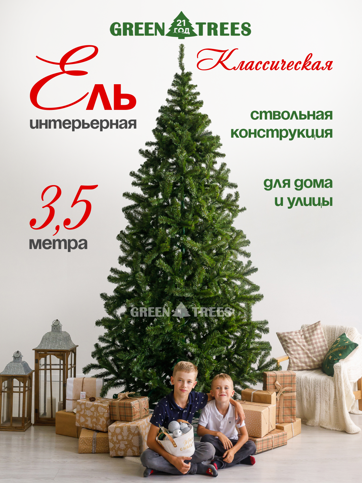 Искусственная интерьерная ствольная ель Green Trees Классическая, высота 3,5 м: сравнение цен, характеристики, фото, актуальное наличие и цены.
