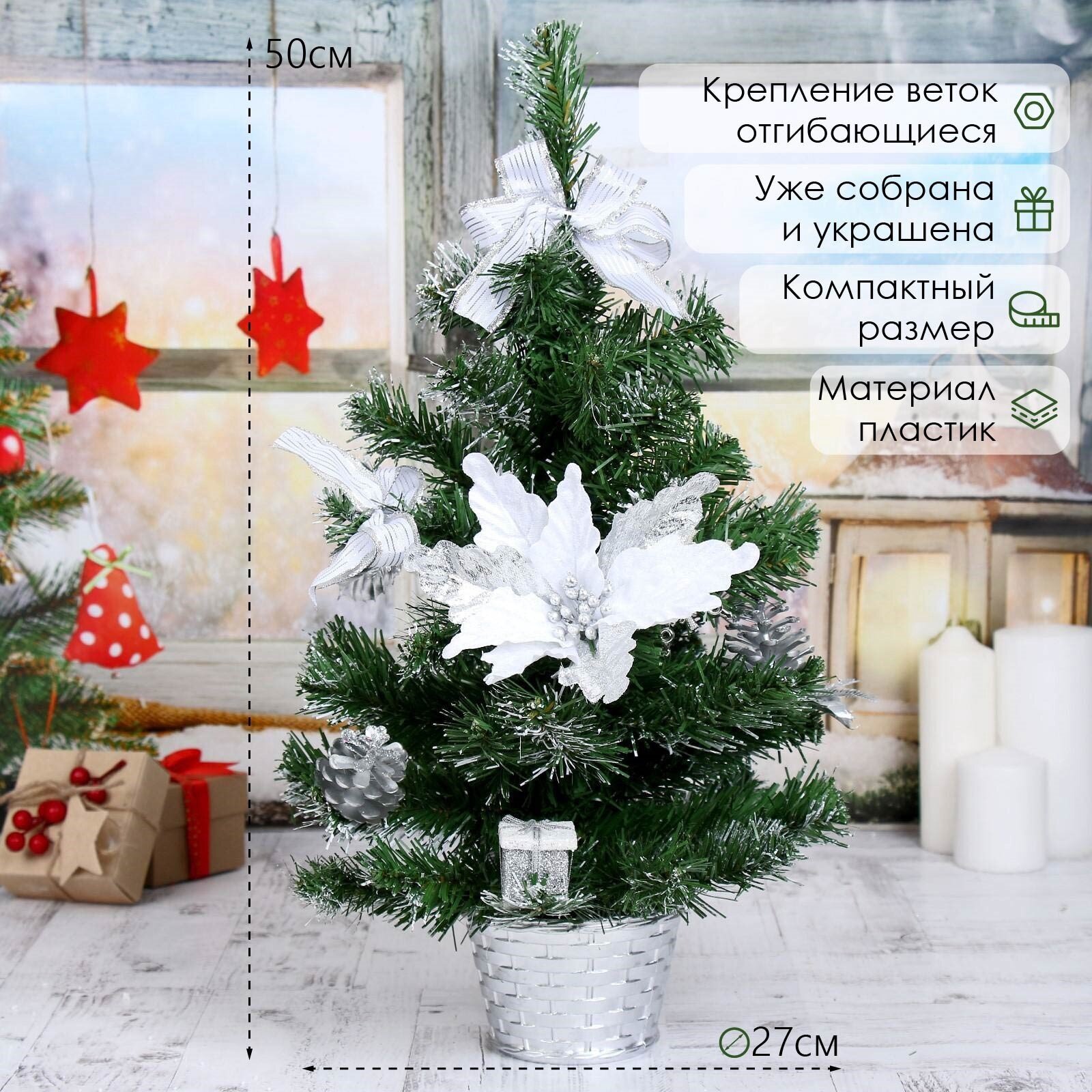 Искусственная ёлка настольная «Зимнее волшебство. Полосатые ленточки», 50 см, белый, ветки отгибаются: сравнение цен, характеристики, фото, актуальное наличие и цены.