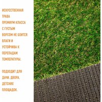 | Дополнительная информация | Газон из экологически чистого 100% полиэтилена. Материал не требователен в уходе, легко укладывается и так же легко демонтируется, обладает защитой от ультрафиолетовых лучей. |