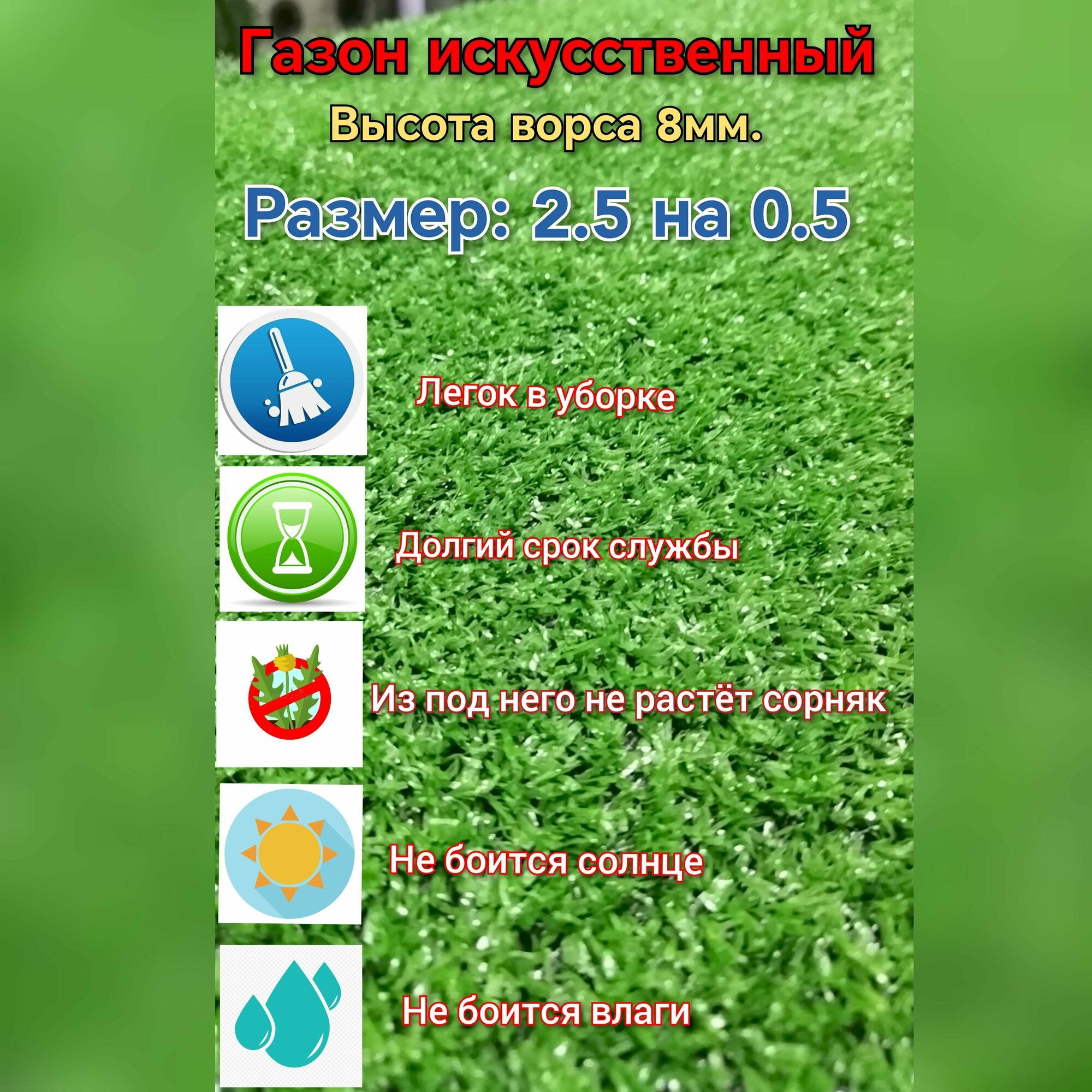 Купить Искусственный газон 2.5 на 0.5 (высота ворса 8мм) газон искусственный, декоративная трава с доставкой по всей России. Искусственный газон 2.5 на 0.5 (высота ворса 8мм) газон искусственный, декоративная трава: сравнение цен, характеристики, фото, актуальное наличие и цены.