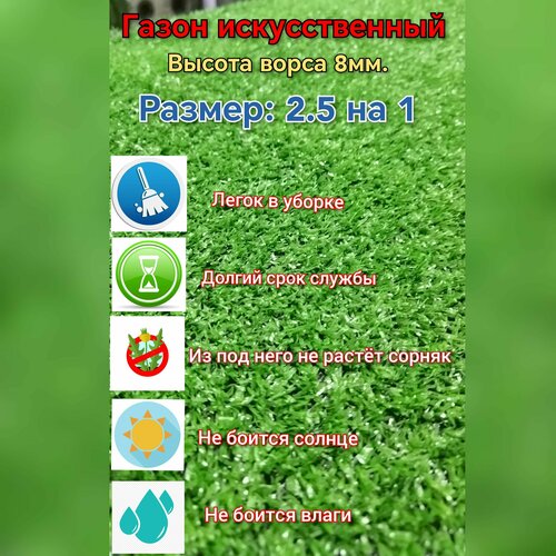 Купить Искусственный газон 2.5 на 1 (высота ворса 8мм) газон искусственный, декоративная трава с доставкой по всей России. Искусственный газон 2.5 на 1 (высота ворса 8мм) газон искусственный, декоративная трава: сравнение цен, характеристики, фото, актуальное наличие и цены.