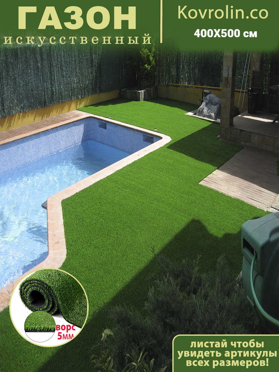 Искусственный газон - это отличный способ сделать ваш двор или сад красивым и ухоженным, не требуя при этом постоянного ухода. Созданное с использованием передовых технологий, универсальное покрытие идеально имитирует натуральный газон, обеспечивая красивый вид и комфорт на долгие годы. Сохранение свежести и цвета гарантировано благодаря качественным материалам, которые устойчивы к ультрафиолетовому излучению, агрессивным атмосферным воздействиям и высоким температурам. Размер декоративного газона 400Х500см. Универсальное садовое озеленение можно использовать как покрытие для дорожек, оформления ландшафта, зоны около бассейна, беседки на даче, в зоне барбекю. Применяется для настила детских площадок или мест для занятия спортом и спортивных игр. Зеленый ковер подойдет для оформления веранды или балкона, отделки лестницы, дизайна стен. Газонную дорожку можно постелить на любой ровной поверхности на землю или песок. Благодаря уникальной структуре и инновационным технологиям, наш рулонный газон обладает удивительной мягкостью и приятной на ощупь текстурой, не уступая естественной траве. Вы и ваши дети будете наслаждаться игрой на нем, не опасаясь травм и аллергических реакций. Травяной декор не требует специального ухода - достаточно просто промыть его водой, чтобы он выглядел как новый. Резиновое покрытие имеет ровный срез, не осыпается, его легко резать под любой размер обычными ножницами или канцелярским ножом. Искусственный настил легко укладывается и так же легко демонтируется. Продаётся рулоном. Ширина ленты 1 м, 1,5 м, 2 м, 3 м, 4 метра, длина от 1 до 10 метров. Приобретая наш зеленый искусственный газон, вы получаете надежное и долговечное покрытие, которое прослужит вам долгие годы. Создайте уютный уголок на своем участке с помощью искусственного травяного настила и наслаждайтесь красотой вашего сада без дополнительных хлопот!