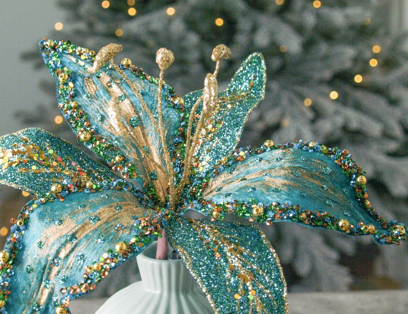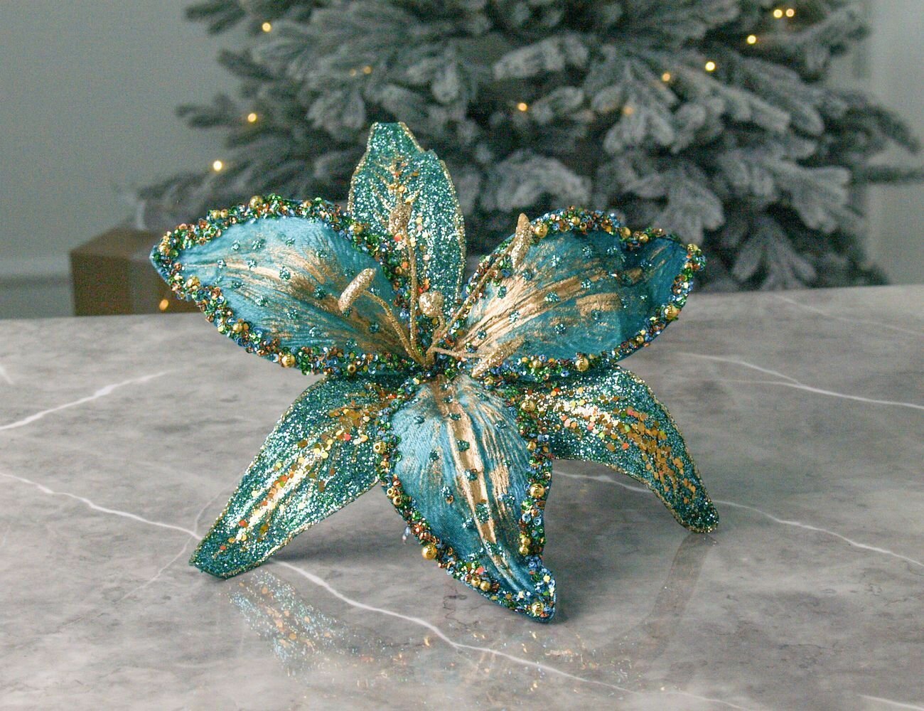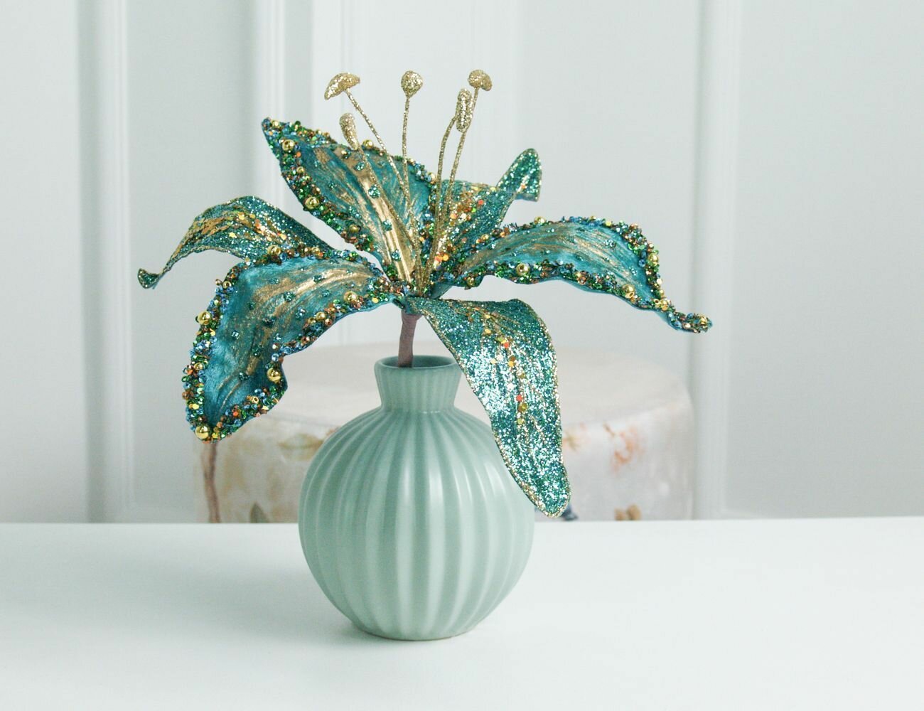 Искусственный цветок бирюзовая лилия на клипсе, бумага, 23 см, Winter Deco 5001125: сравнение цен, характеристики, фото, актуальное наличие и цены.