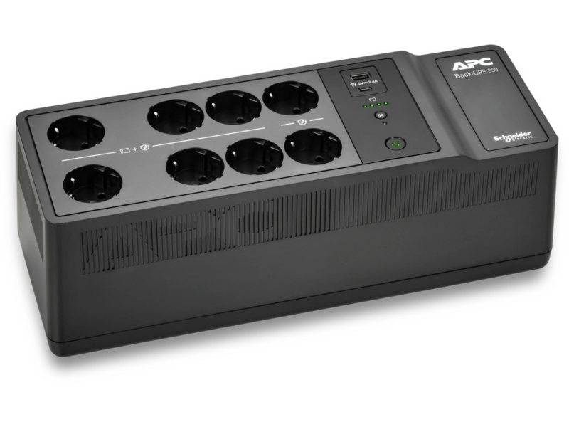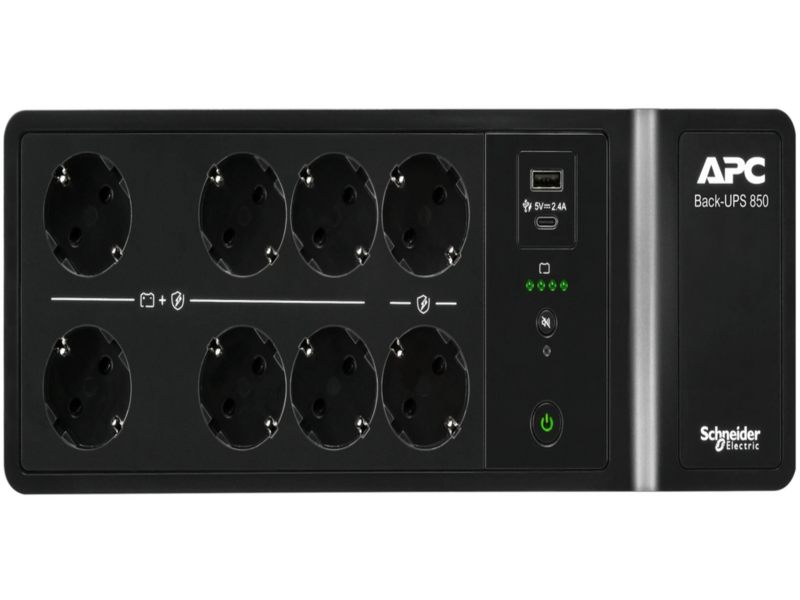 Источник бесперебойного питания APC Back-UPS ES 850VA/520W, 230V, 8 Schuko (2 Surge & 6 batt.), USB, USB charge(type A, C), Data/DSL protect,(BE700G-RS, BE850G2-RS analogue), 1 year warranty
