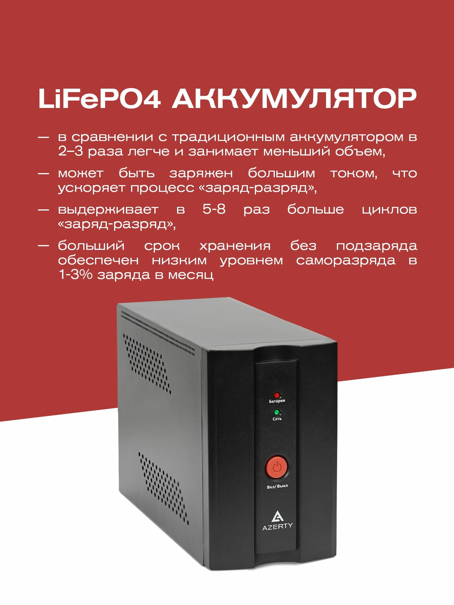 Источник бесперебойного питания Azerty, UPL-600U, линейно-интерактивная схема, LiFePO4 батарея: сравнение цен, характеристики, фото, актуальное наличие и цены.