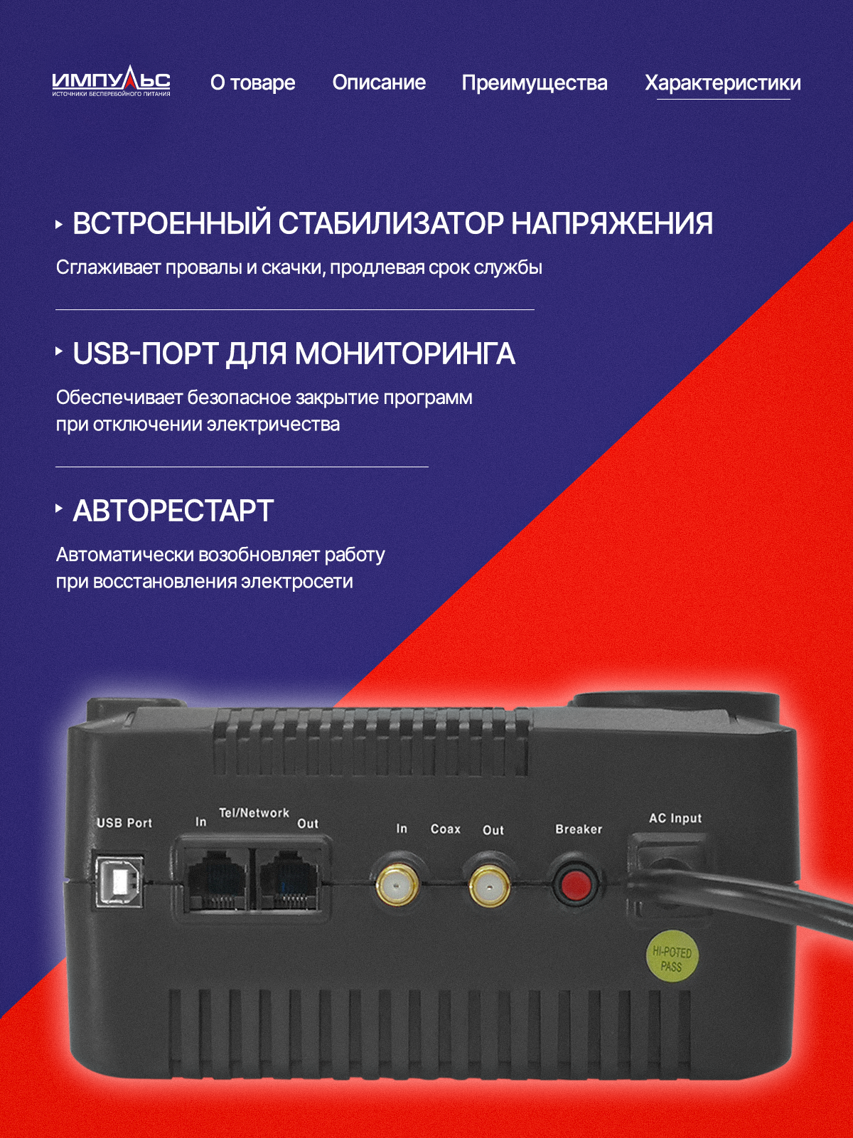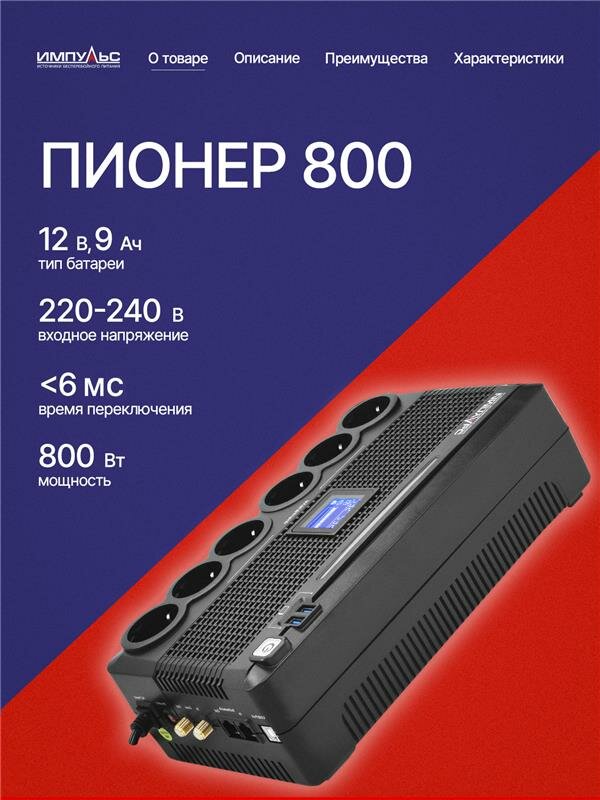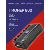Источник бесперебойного питания (ИБП) Импульс Пионер 800 черный, line-interactive, мощность 800ВА, 480Вт (PR80101): сравнение цен, характеристики, фото, актуальное наличие и цены.