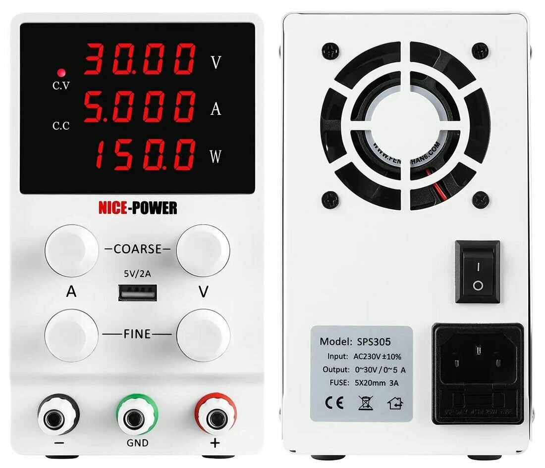 Купить Источник питания Nice-Power SPS305 импульсный (30 В, 5 А, 1 канал, 150 Вт, USB выход 5 В/2 А) с доставкой по всей России.