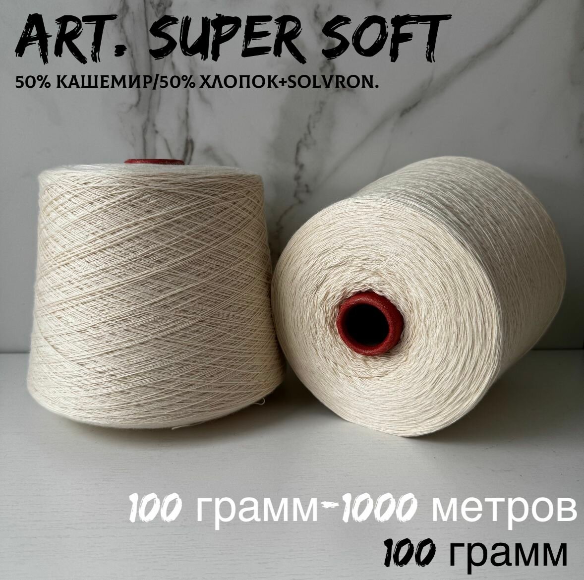 Купить Итальянская бобинная пряжа для вязания art. SUPER SOFT — 50 % кашемир/50% хлопок+solvron, 100 грамм с доставкой по всей России.