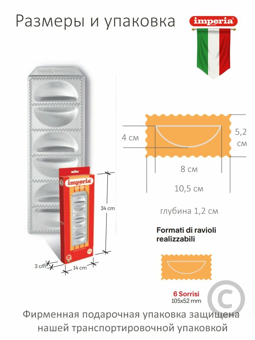 Купить Итальянская форма Imperia Smile для равиоли, чебуреков, пицетты с доставкой по всей России. Итальянская форма Imperia Smile для равиоли, чебуреков, пицетты: сравнение цен, характеристики, фото, актуальное наличие и цены.