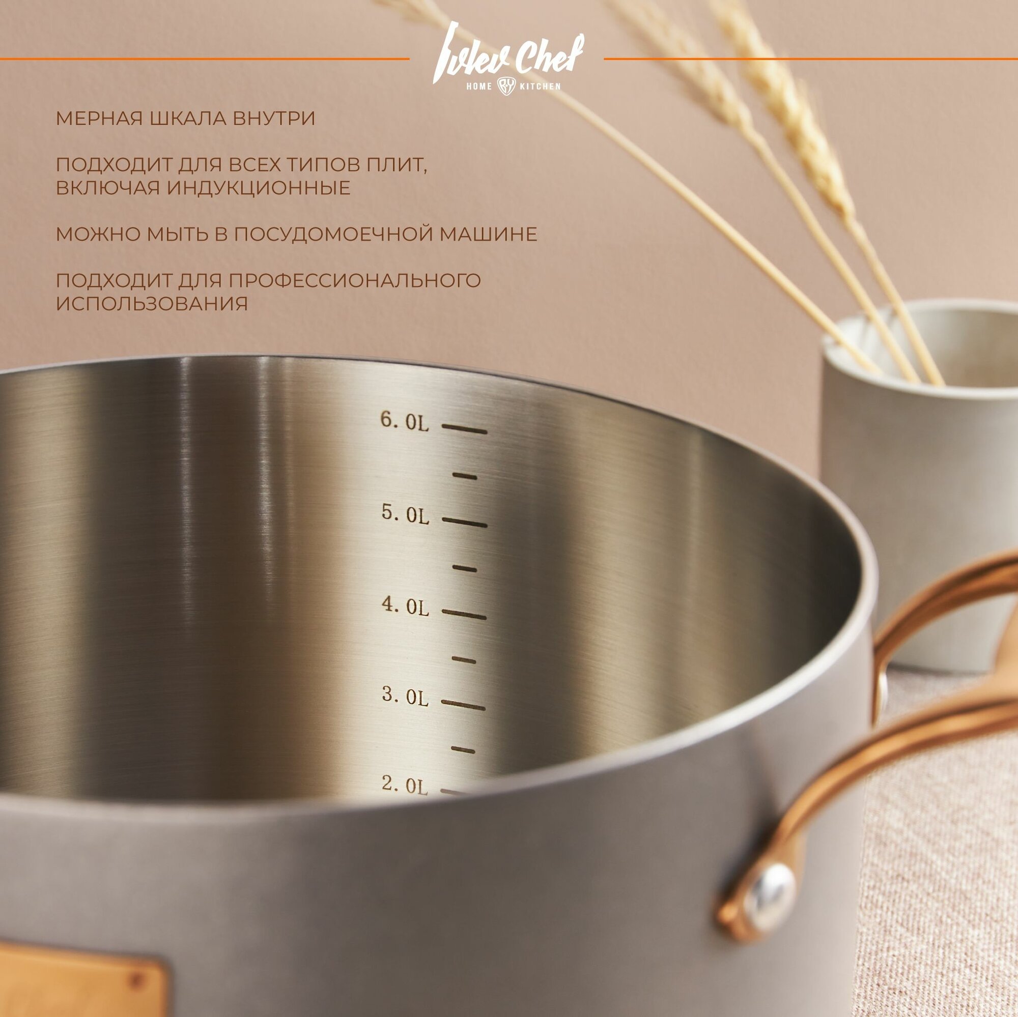 Кастрюля Ivlev Chef «Ladoga» объемом 6,1 литра - это высококачественный кухонный инструмент, который станет незаменимым помощником на вашей кухне.