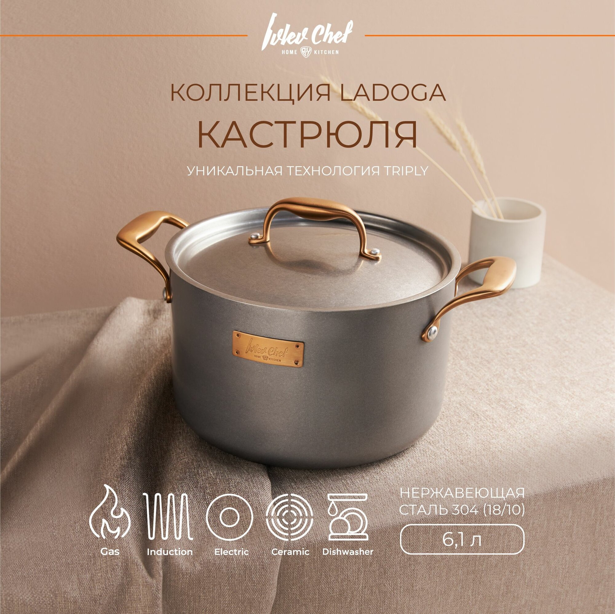 Купить Кастрюля 6,1 л с крышкой Ivlev Chef Ladoga, для индукционных плит с доставкой по всей России. Кастрюля 6,1 л с крышкой Ivlev Chef Ladoga, для индукционных плит: сравнение цен, характеристики, фото, актуальное наличие и цены.