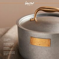 Ковш Ivlev Chef «Ladoga» объемом 2,5 литра с крышкой, изготовленный из нержавеющей стали 18/10, обеспечивает устойчивость к окислению и деформации, что гарантирует долгий срок службы.