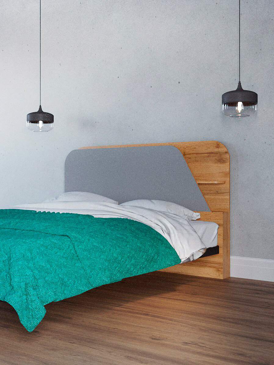 Изголовье для кровати шириной 120 см. Можно поставить рядом с любой парящей кроватью. Предусмотрена возможность крепления к кровати фирмы Make Mebel, арт 103798668382 . В изголовье есть полки разной высоты. ЛДСП высокого качества от фирмы Ламарти, цвет Дуб Вотан, Вулканический серый.
