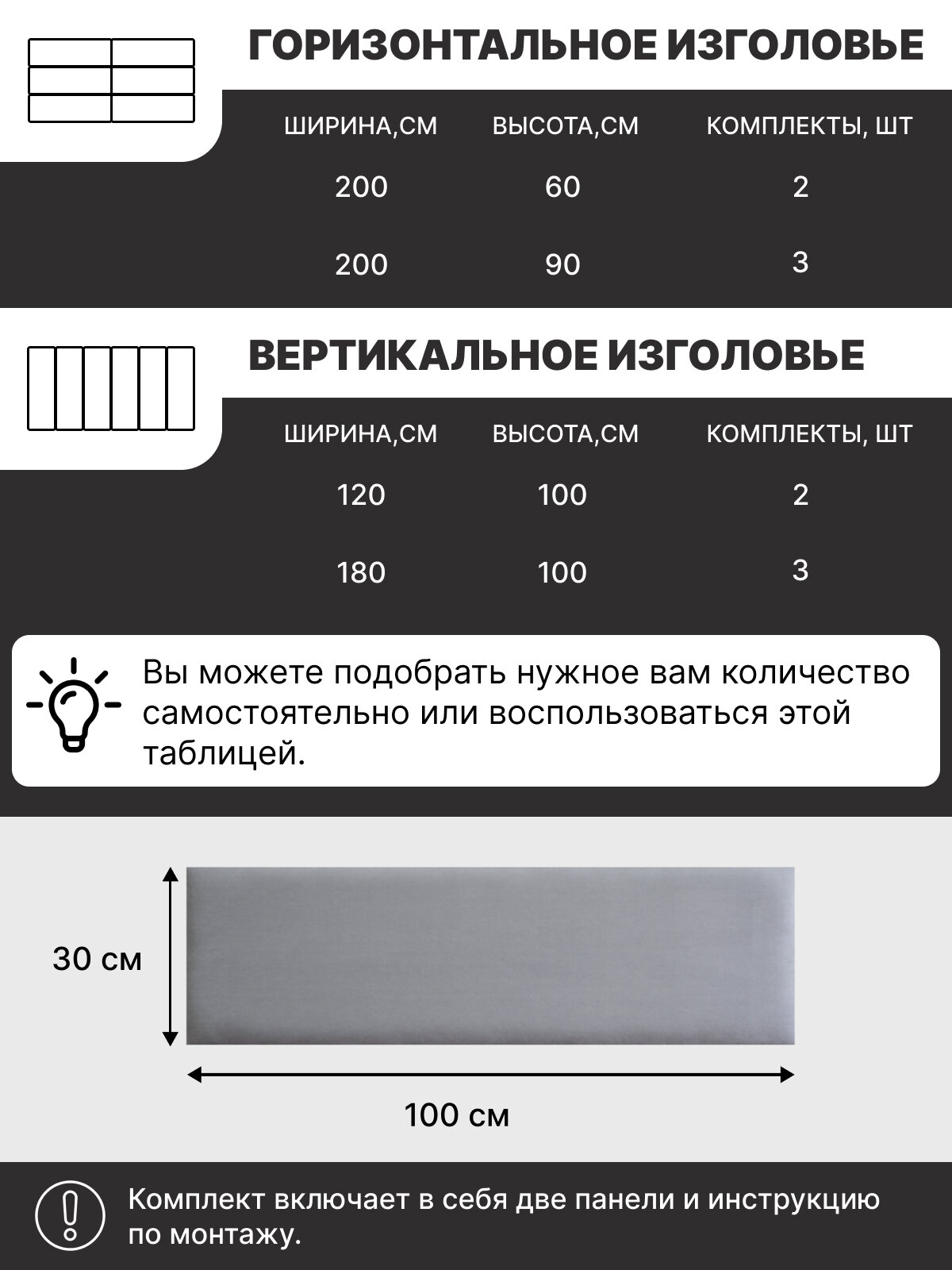 Изголовье кровати, мягкое изголовье 100х30 см, комплект 2 шт, цвет светло-серый: сравнение цен, характеристики, фото, актуальное наличие и цены.