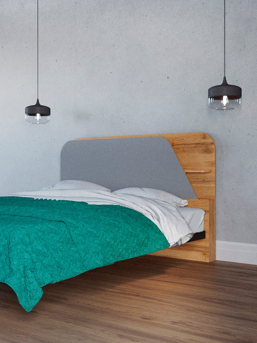 Изголовье для кровати шириной 160 см. Можно поставить рядом с любой парящей кроватью. Предусмотрена возможность крепления к кровати фирмы Make Mebel, арт 1845718232. В изголовье есть полки разной высоты. Есть кровать с изголовьем, арт 2042977663 ЛДСП высокого качества от фирмы Ламарти: Дуб Вотан и Вулканический серый.