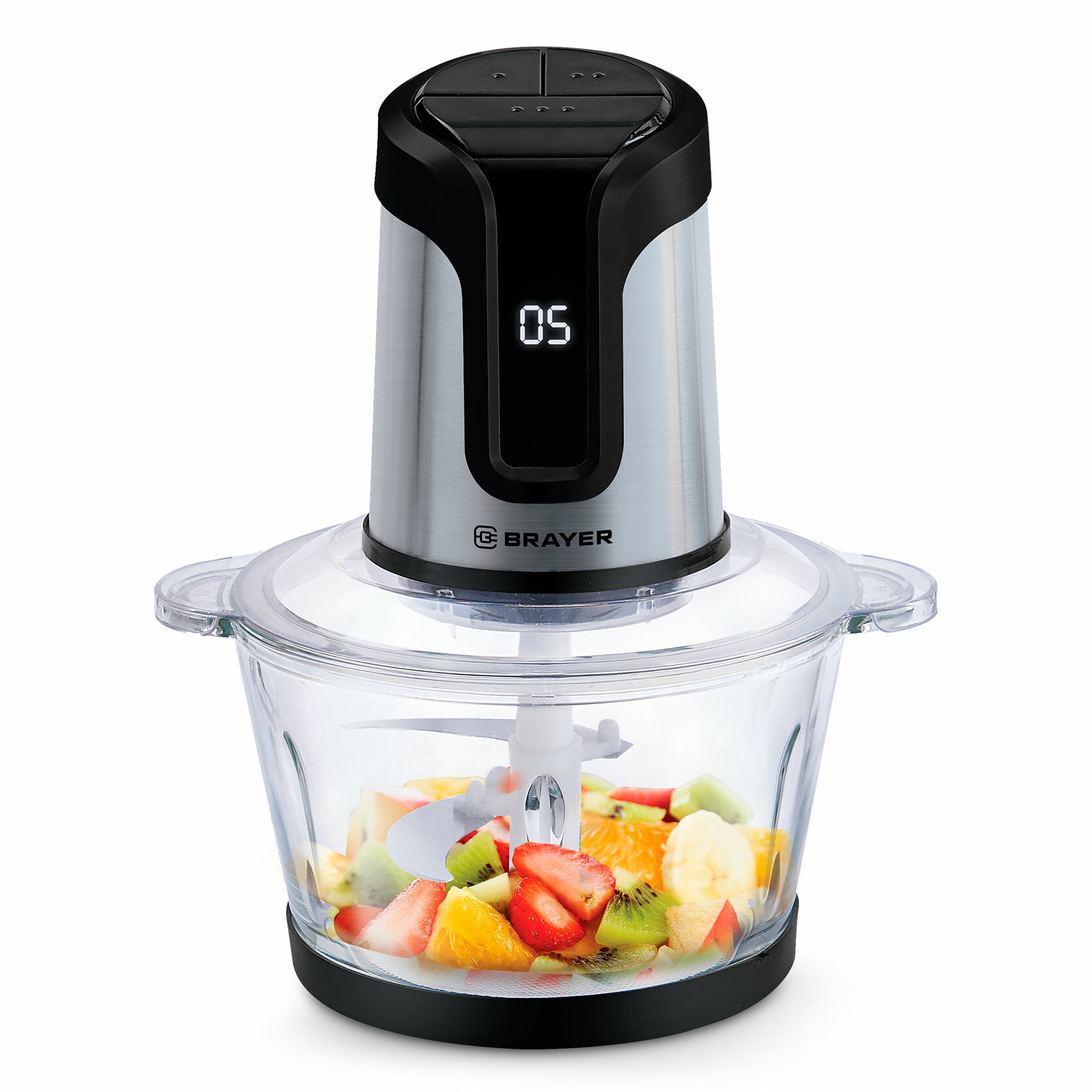 Купить Измельчитель Brayer 1407BR, 800Вт, LED-дисплей, стеклянная чаша 2л, нержавеющая сталь с доставкой по всей России.