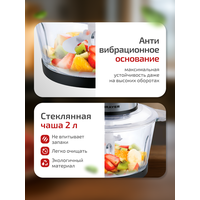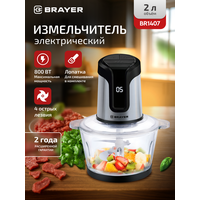 Измельчитель BRAYER BR1407, 800Вт, стеклянная чаша 2л, 3 скорости, LED-дисплей, чёрный