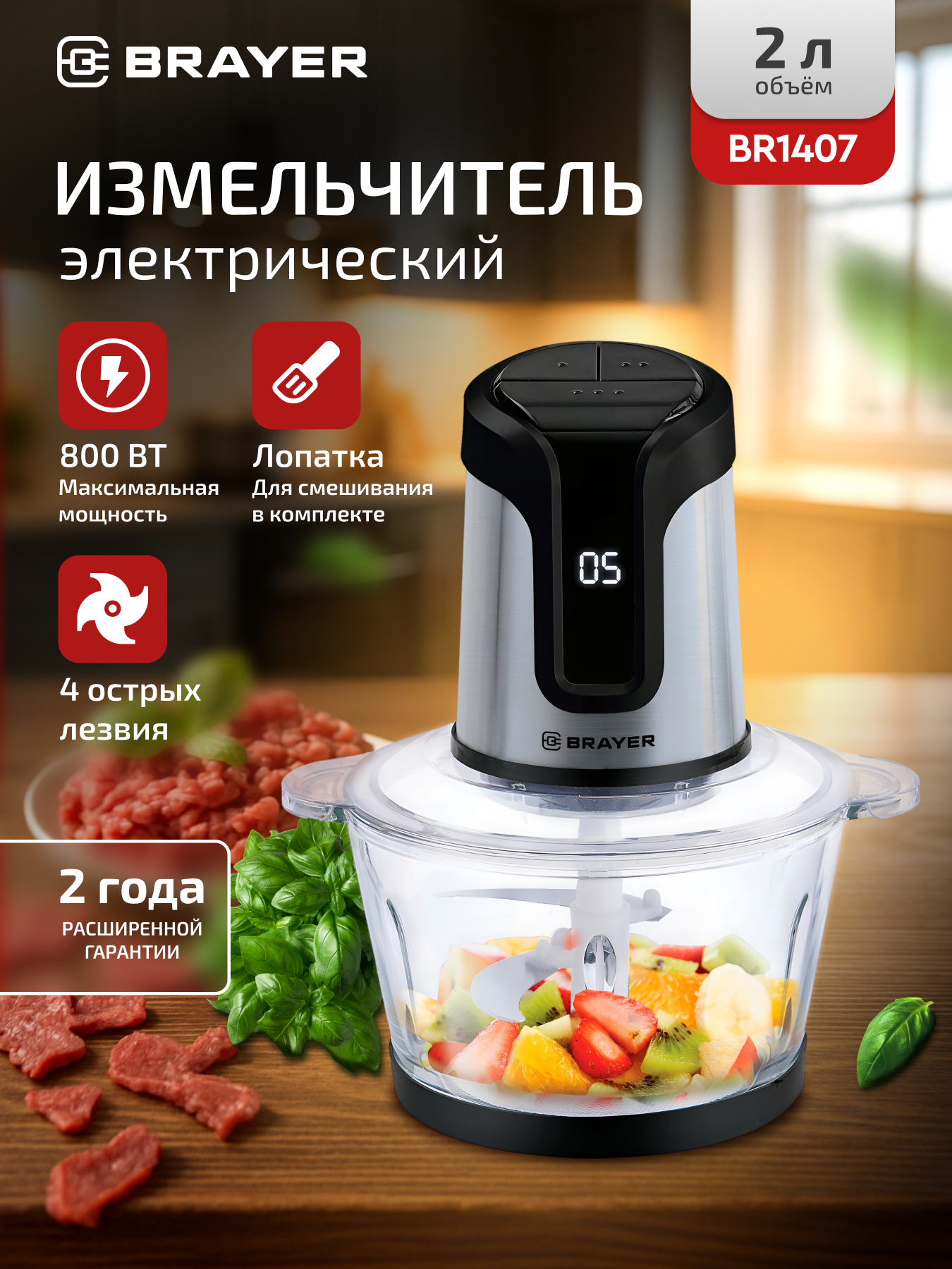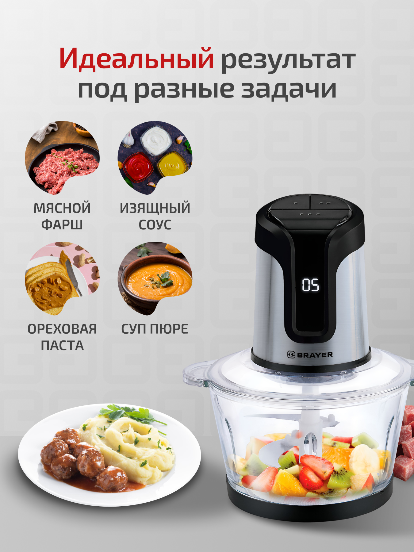 Измельчитель BRAYER BR1407, 800Вт, стеклянная чаша 2л, 3 скорости, LED-дисплей, чёрный: сравнение цен, характеристики, фото, актуальное наличие и цены.