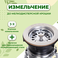 В измельчителе используется классическая винтовая система, которая позволит установить устройство практически к любой раковине, не прибегая к помощи сторонних переходников. Управлять устройством легко и просто – в комплекте есть пневматическая кнопка