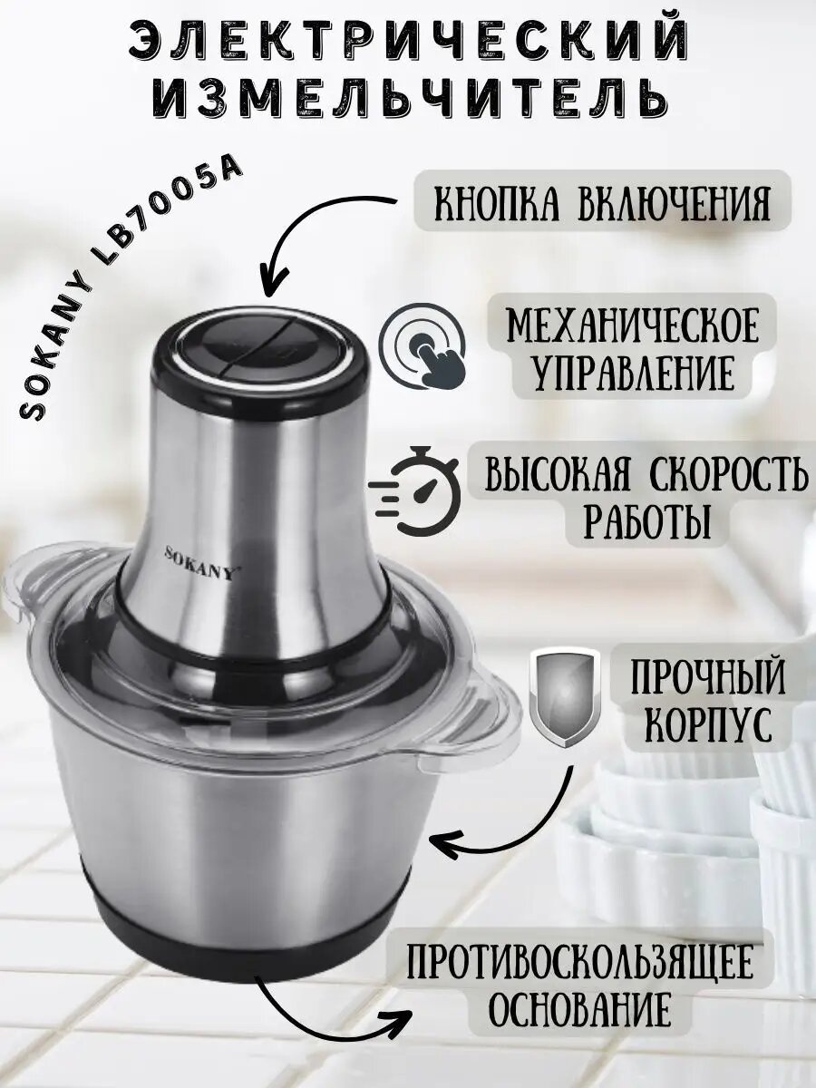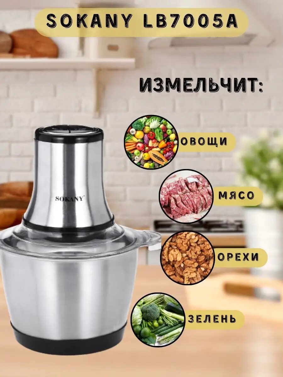 Измельчитель чоппер SOKANY LB-7005A Multi-Cutter 800 Вт 3 л, цвет серебристый: сравнение цен, характеристики, фото, актуальное наличие и цены.