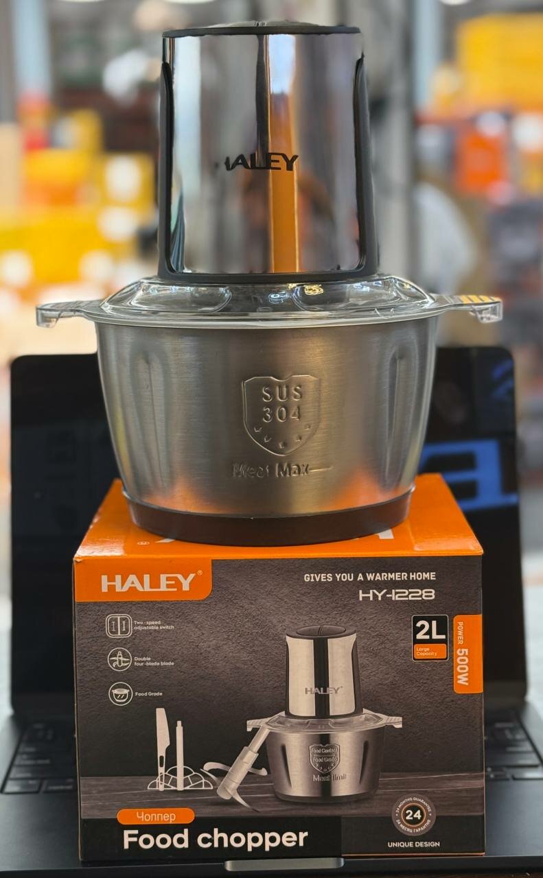 Измельчитель кухонный Haley HY-1228, мощность 500 Вт, объём 2 литра, 2 скорости, кухонный измельчитель из нержавеющей стали, для овощей, фарша, кофе, орехов, портативный, серебристый: сравнение цен, характеристики, фото, актуальное наличие и цены.