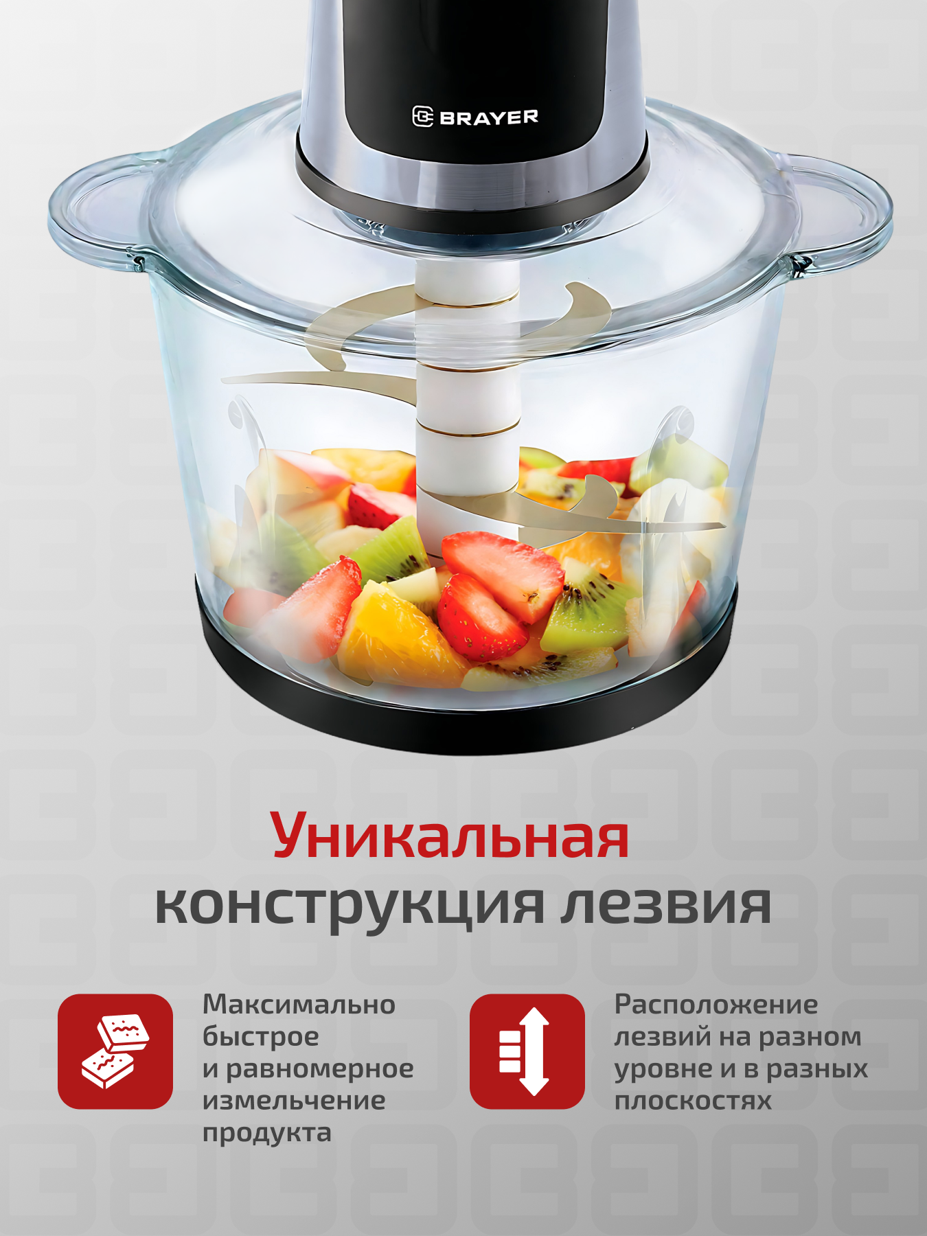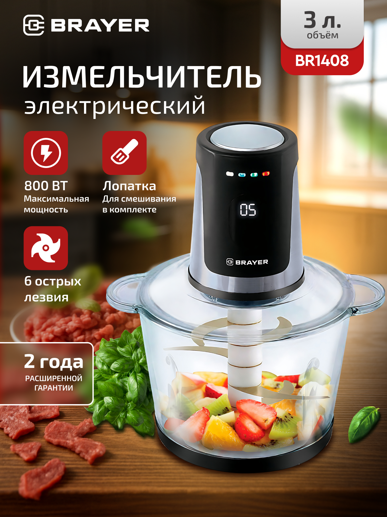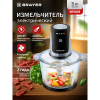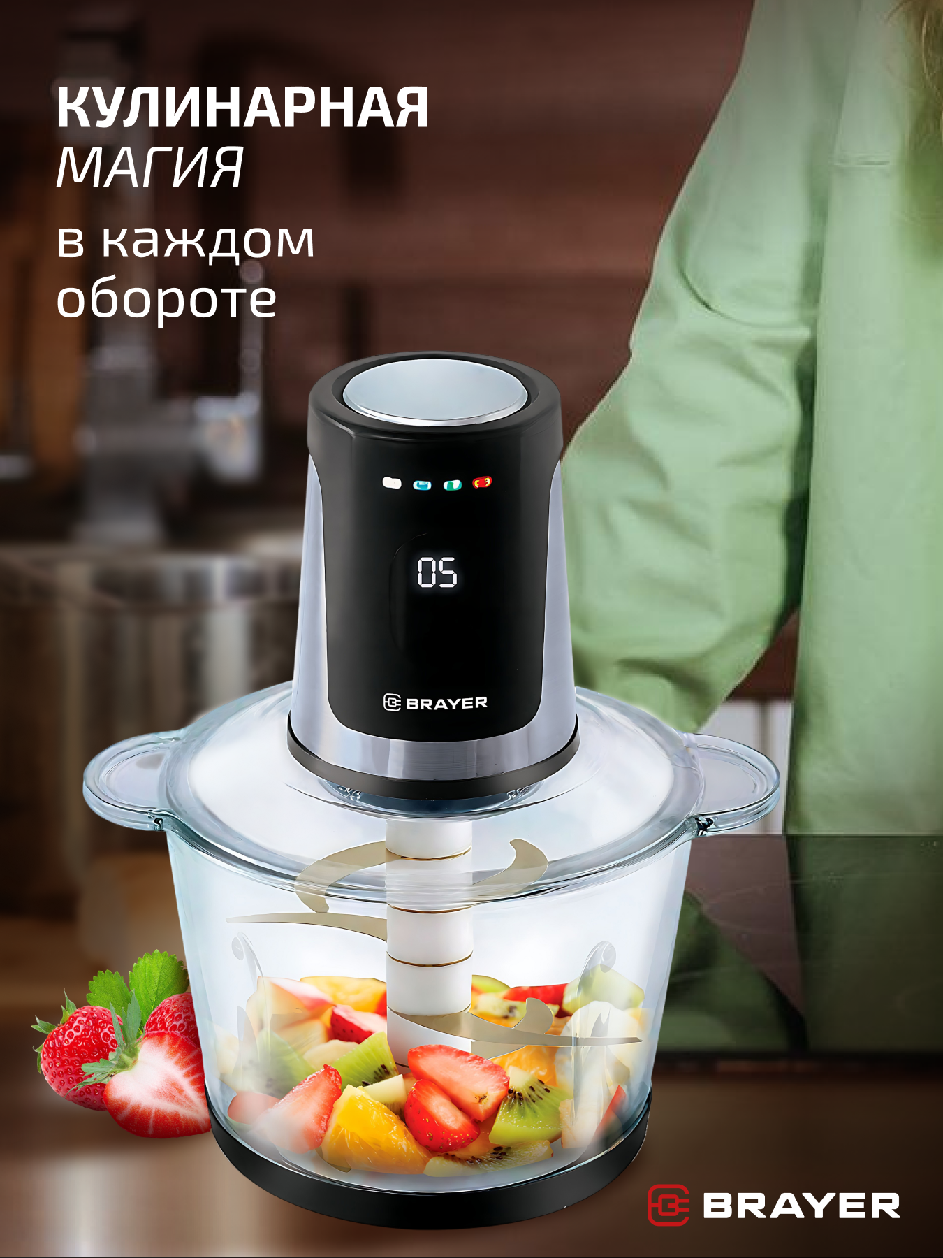 Измельчитель BRAYER BR1408, 6 титановых лезвия, LED-дисплей, емкость чаши 3л: сравнение цен, характеристики, фото, актуальное наличие и цены.
