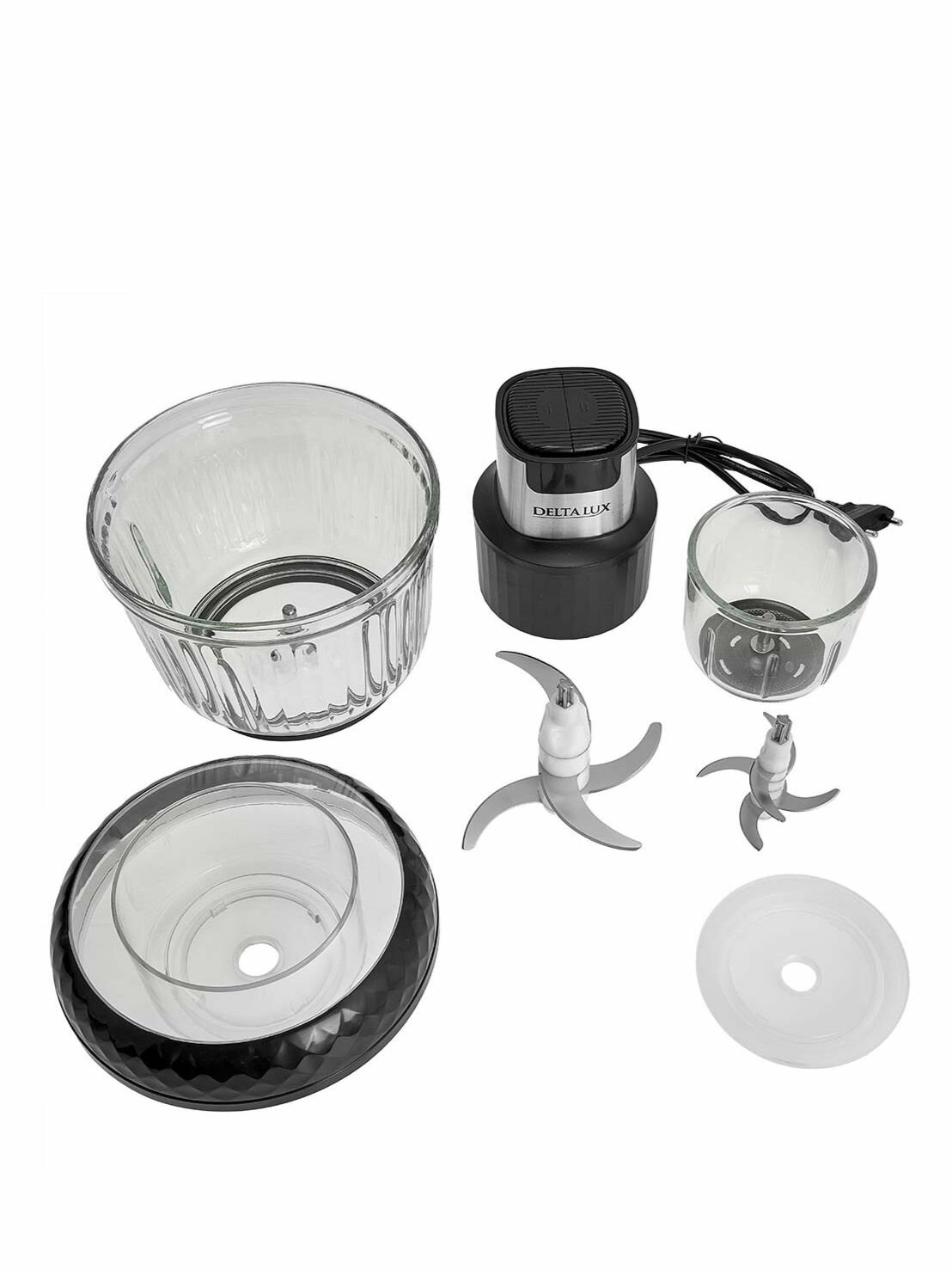 Измельчитель кухонный электрический Delta Lux DE-7403, Мощность 850 Вт, Объем чаш 2,5 л и 0,3 л, Черный/Прозрачный: сравнение цен, характеристики, фото, актуальное наличие и цены.