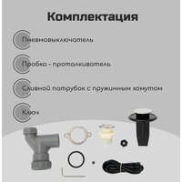 | Дополнительная информация | комплектация: пневмовыключатель (выключатель, шланг, 2 сменные цветовые панели); фильтрующая сетка с резиновой пробкой; монтажный узел; сливная труба с пружинным хомутом |