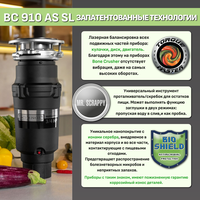 Купить Измельчитель пищевых отходов Bone Crusher 910 AS-Slim Line + установочный комплект L.B.Plast с доставкой по всей России.