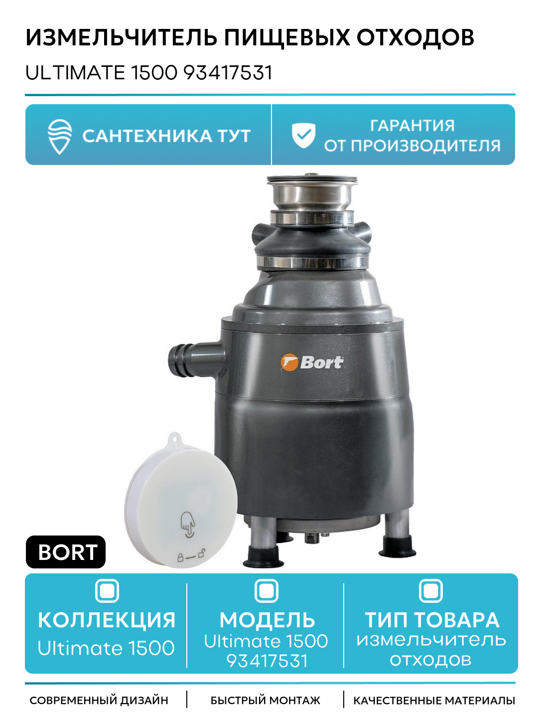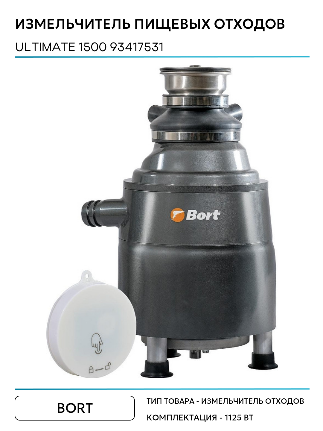 Купить Измельчитель пищевых отходов Bort Ultimate 1500 93417531 1125 Вт с доставкой по всей России. Измельчитель пищевых отходов Bort Ultimate 1500 93417531 1125 Вт: сравнение цен, характеристики, фото, актуальное наличие и цены.