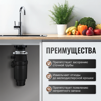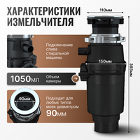Измельчитель пищевых отходов для раковины и мойки на кухню, электрический, пневмокнопка, 1050 мл, 370 Вт, черный: сравнение цен, характеристики, фото, актуальное наличие и цены.