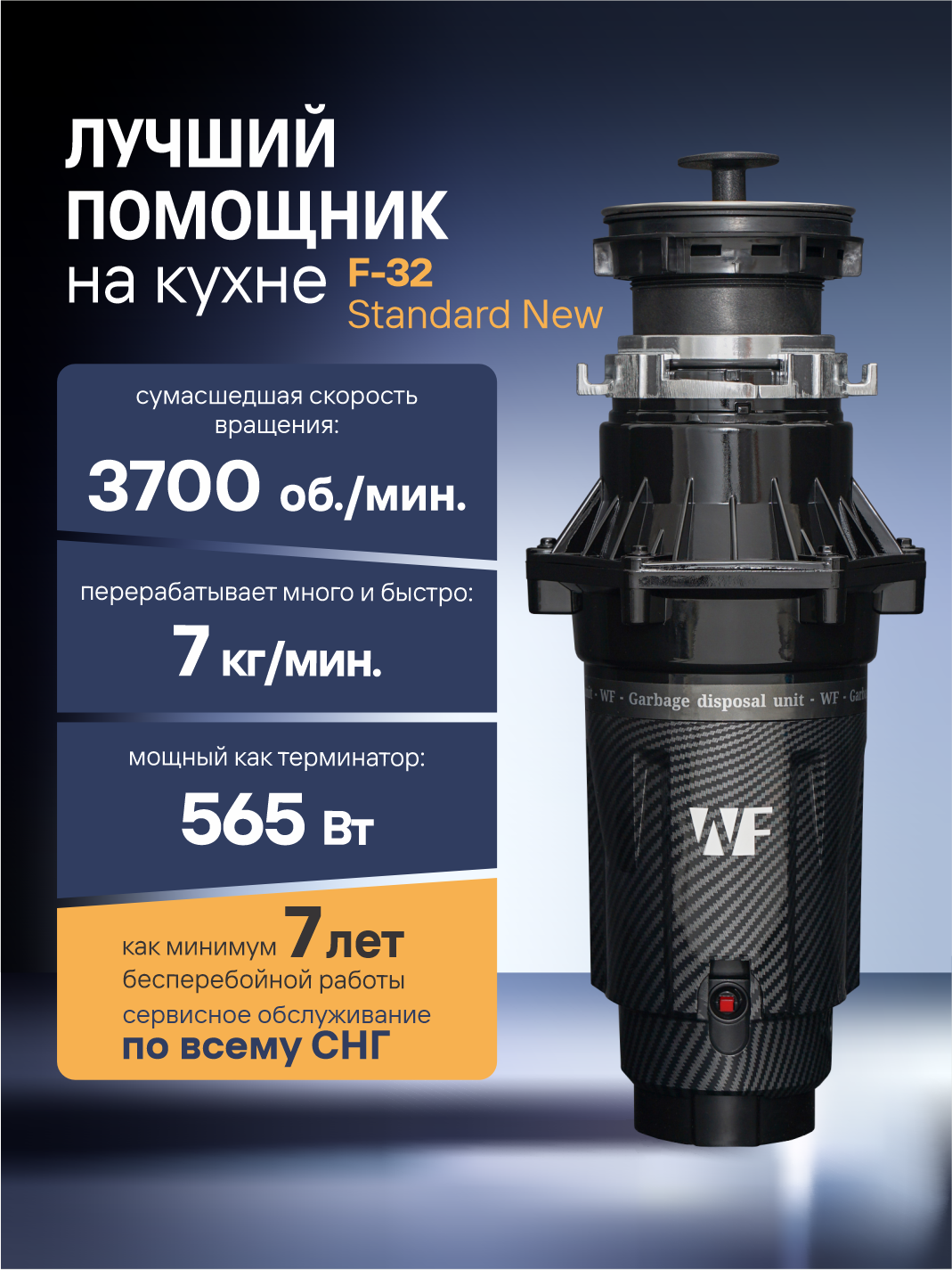 Измельчитель кухонный в раковину WF F-32 Standard NEW, мощность 565 Вт, пневмокнопка, черный: сравнение цен, характеристики, фото, актуальное наличие и цены.