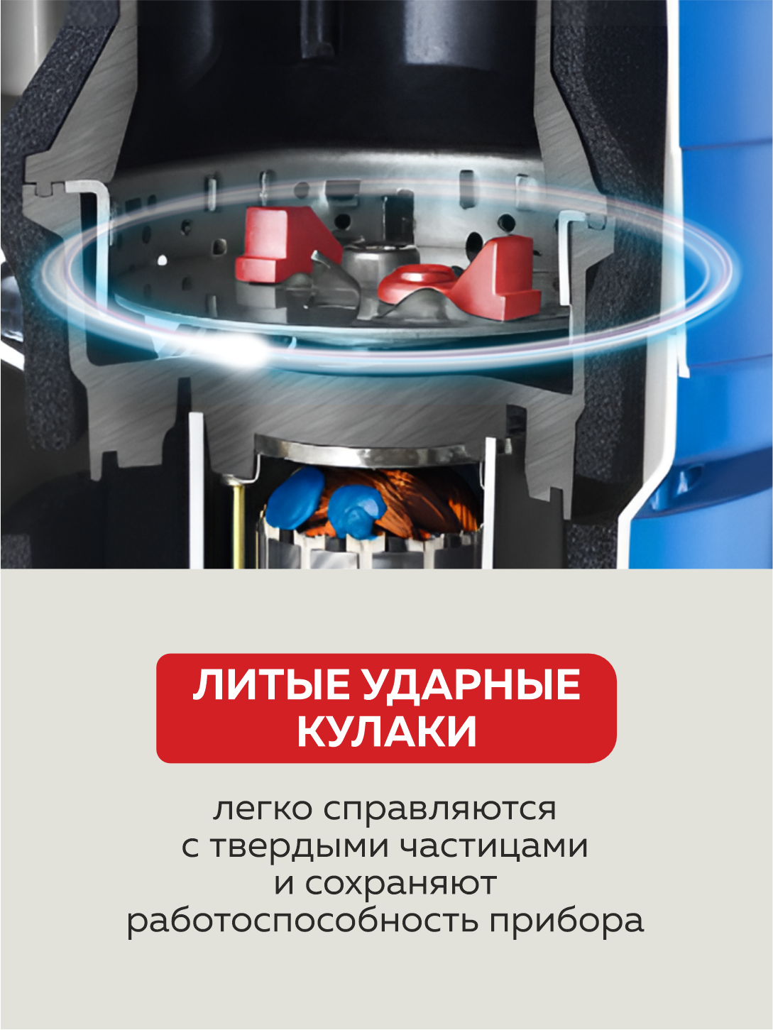 Материалы измельчающего элемента и камеры выполнены из нержавеющей стали и поликарбоната соответственно. Это обеспечивает долговечность и надежность работы устройства.