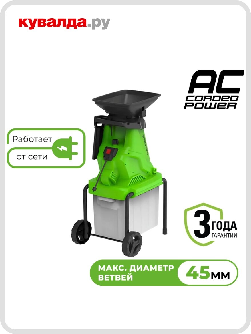 Купить Измельчитель веток электрический GREENWORKS 2208007 с контейнером с доставкой по всей России.
