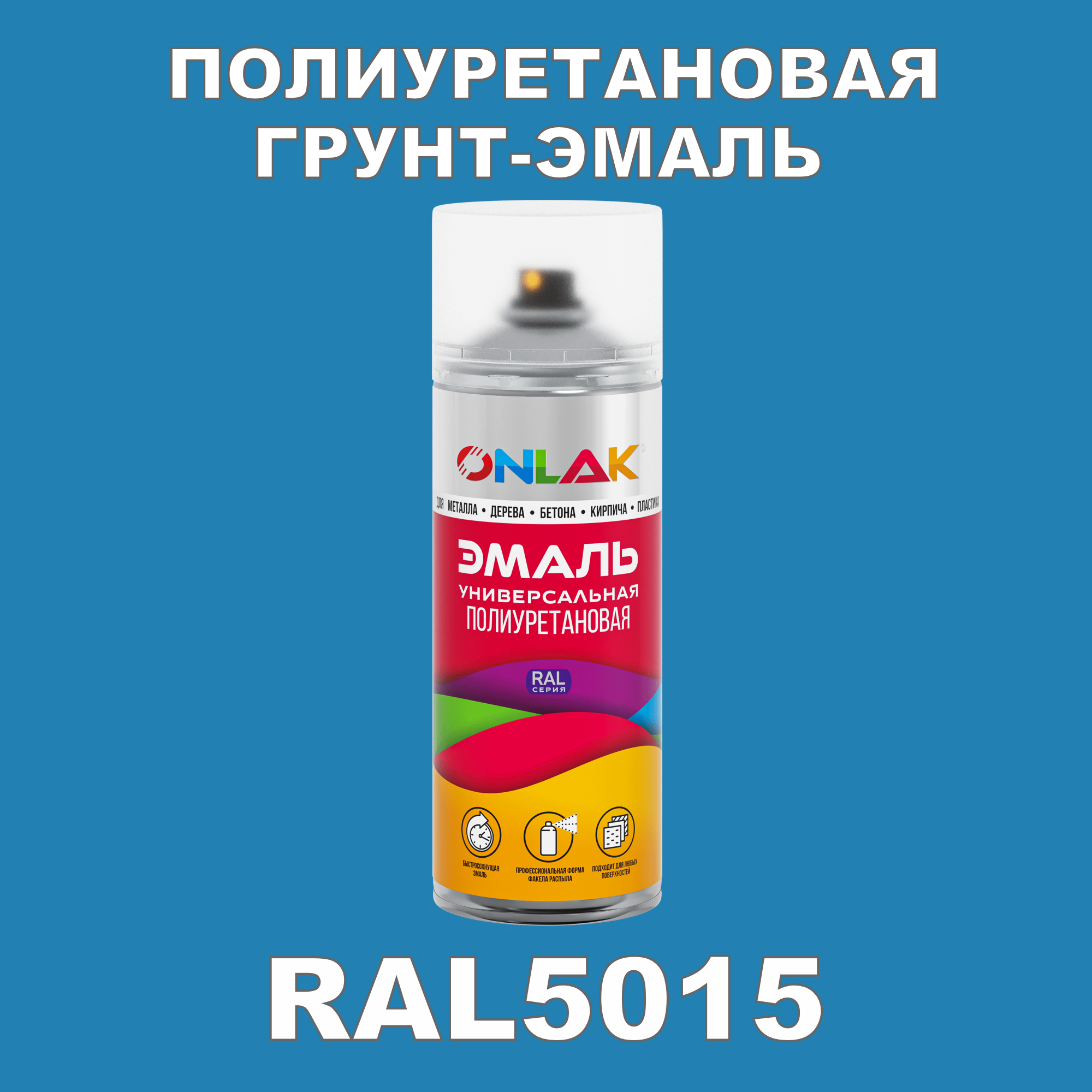 Износостойкая полиуретановая грунт-эмаль ONLAK в баллончике, быстросохнущая, глянцевая, для металла и защиты от ржавчины, дерева, бетона, кирпича, спрей 520 мл, RAL5015: сравнение цен, характеристики, фото, актуальное наличие и цены.