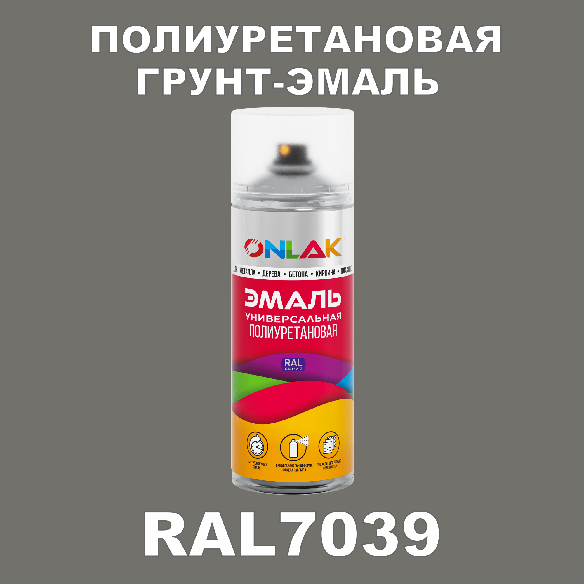 Износостойкая полиуретановая грунт-эмаль ONLAK в баллончике, быстросохнущая, глянцевая, для металла и защиты от ржавчины, дерева, бетона, кирпича, спрей 520 мл, RAL7039: сравнение цен, характеристики, фото, актуальное наличие и цены.