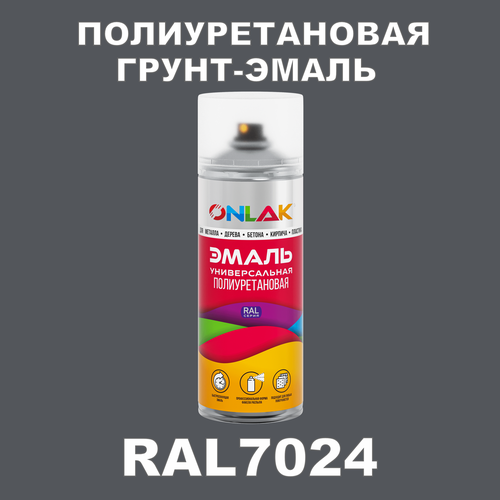 Износостойкая полиуретановая грунт-эмаль ONLAK в баллончике, быстросохнущая, матовая, для металла и защиты от ржавчины, дерева, бетона, кирпича, спрей 520 мл, RAL7024