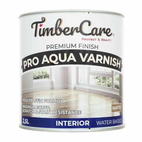 Быстросохнущий износостойкий лак для пола TimberCare Pro Aqua Varnish является профессиональным средством. Изготовлен на водной основе, без труда распределяется по поверхностям, в том числе это позволяет добиться непроницаемости для влаги. Лак можно использовать для любых деревянных поверхностей, после застывания слой будет прочным и долговечным. Производится в соответствии со строгими стандартами, в том числе он отвечает экологическим нормам EN 71-3, нормативам REACH и CLP.