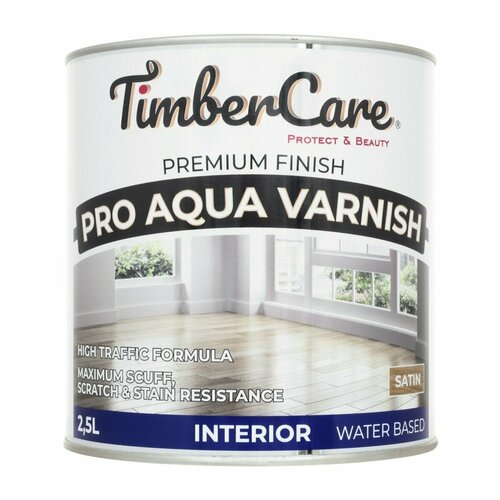 Быстросохнущий износостойкий лак для пола TimberCare Pro Aqua Varnish является профессиональным средством. Изготовлен на водной основе, без труда распределяется по поверхностям, в том числе это позволяет добиться непроницаемости для влаги. Лак можно использовать для любых деревянных поверхностей, после застывания слой будет прочным и долговечным. Производится в соответствии со строгими стандартами, в том числе он отвечает экологическим нормам EN 71-3, нормативам REACH и CLP.