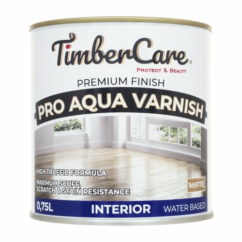 Быстросохнущий износостойкий лак для пола TimberCare Pro Aqua Varnish является профессиональным средством. Изготовлен на водной основе, без труда распределяется по поверхностям, в том числе это позволяет добиться непроницаемости для влаги. Лак можно использовать для любых деревянных поверхностей, после застывания слой будет прочным и долговечным. Производится в соответствии со строгими стандартами, в том числе он отвечает экологическим нормам EN 71-3, нормативам REACH и CLP.