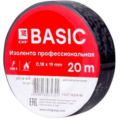 Изолента EKF Basic класс A 0,18х19 мм, 20 м, 10 шт., черный