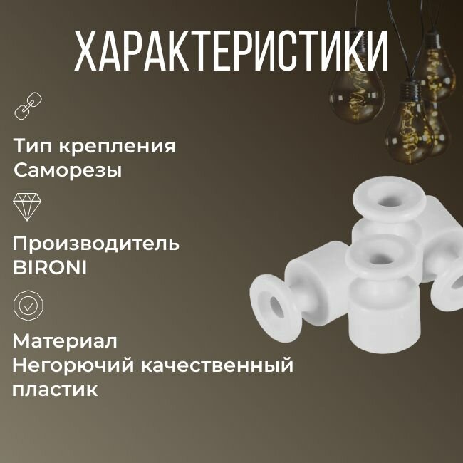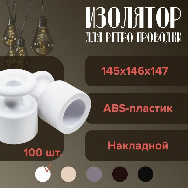 Изолятор BIRONI для ретро проводки, пластиковый, накладной, цвет белый — 100 шт.: сравнение цен, характеристики, фото, актуальное наличие и цены.