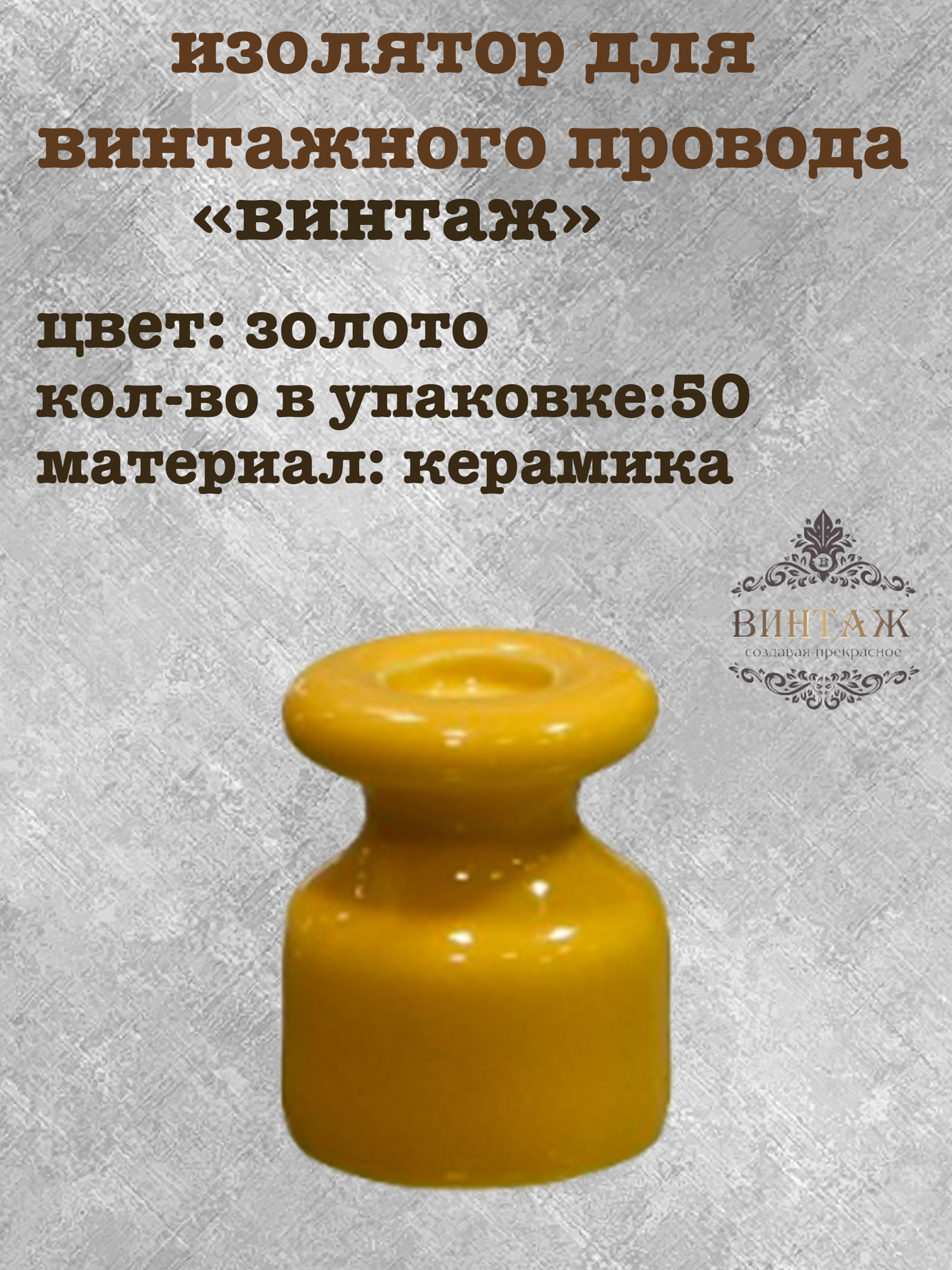 Изолятор электрический для наружного монтажа, керамика, цвет Золотой, Ф17.5×23мм, (50шт/уп): сравнение цен, характеристики, фото, актуальное наличие и цены.
