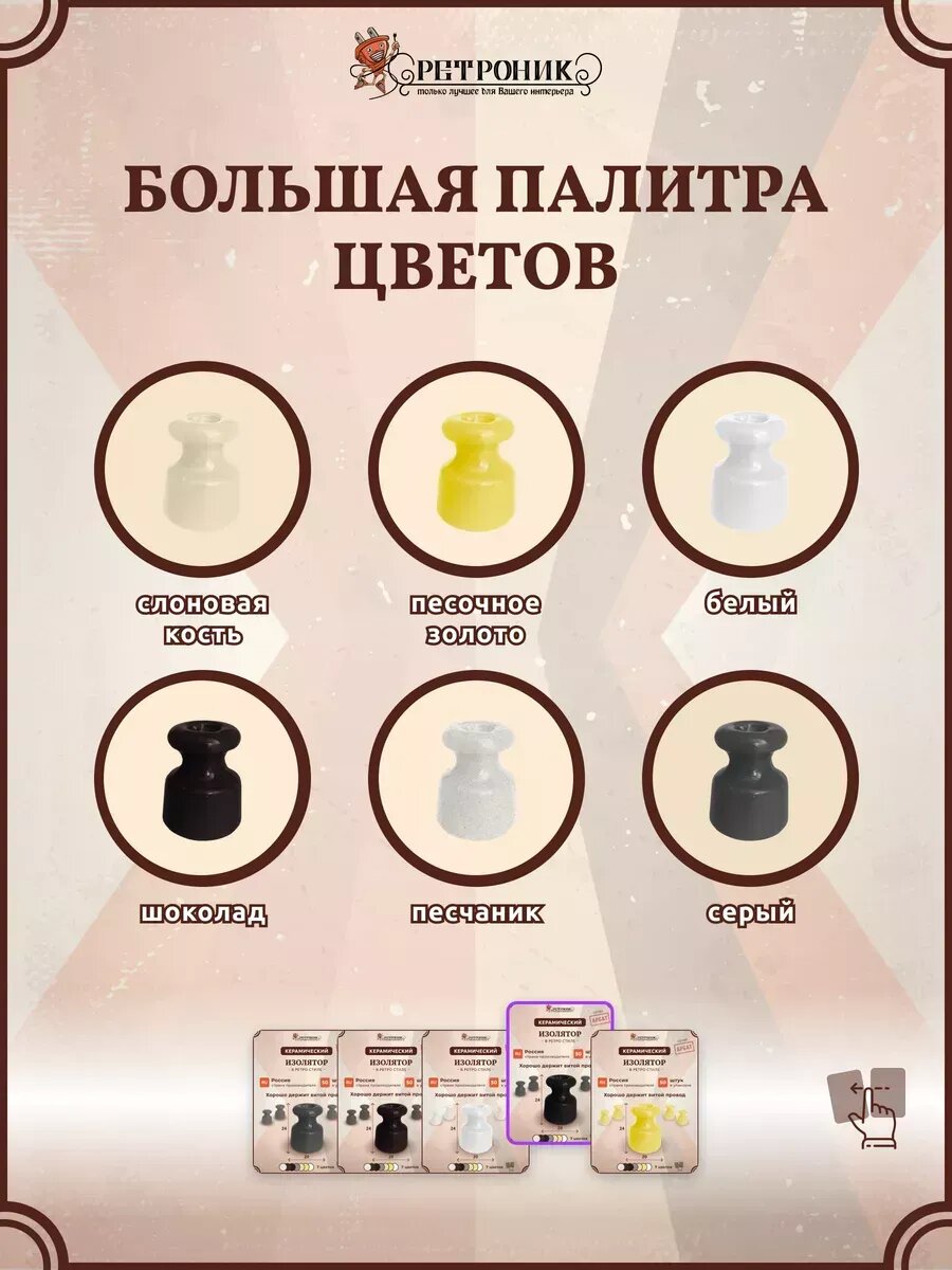 Изоляторы ретро керамические для провода и проводки Арбат 30 шт: сравнение цен, характеристики, фото, актуальное наличие и цены.