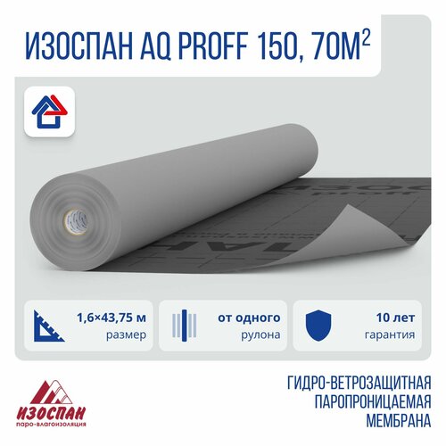 - Полное наименование: Изоспан AQ proff 150 70м2 супердиффузионная мембрана