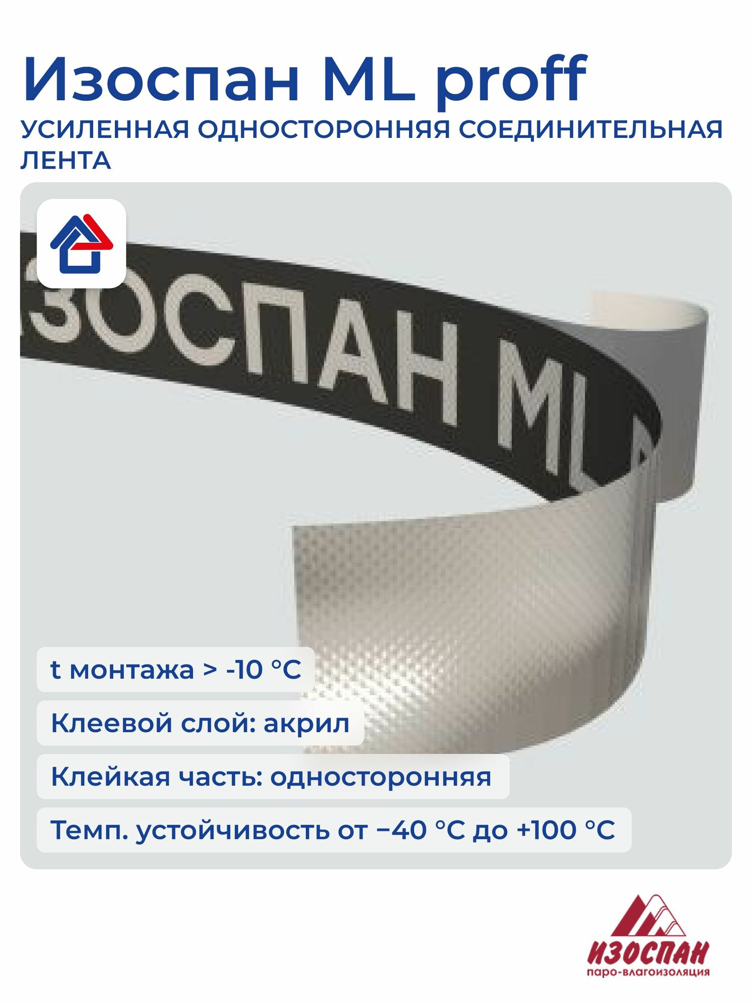 - Полное наименование: Изоспан ML proff 50мм х 25м односторонняя соединительная лента